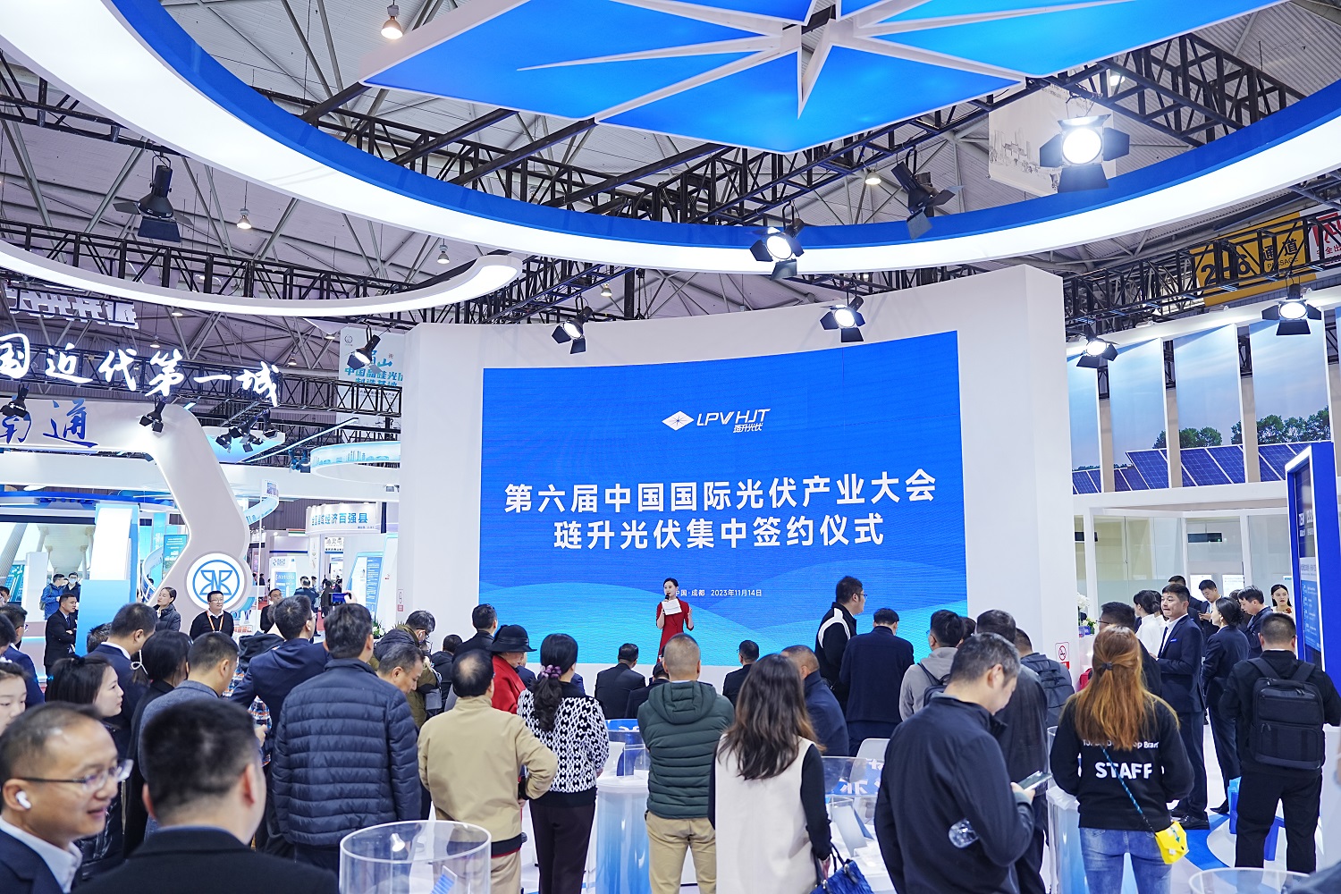 展会首日,琏升光伏迎来首个集中签约。琏升光伏董事长王新发表致辞。他表示,光伏瀚海,百舸争流。借助第六届光伏博览大会的东风,我们在此隆重举行琏升光伏与各位知名新能源企业的签约仪式,倍感荣幸、深受鼓舞!